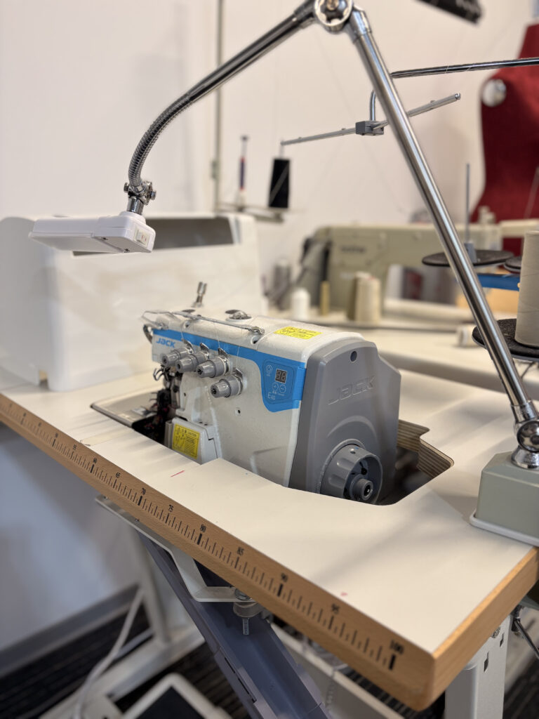 Stuudio on sisustatud professionaalsete õmblusseadmetega, mis võimaldavad töödelda materjale kvaliteetselt, mugavalt ja võimalikult väikese pingutusega.